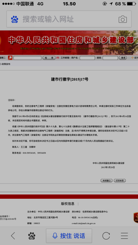 国家住房和城乡建设部网站截屏(网址:http://www.mohurd.gov.cn/wjfb/201506/t20150602_221037.html)