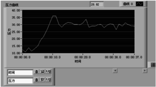整个系统通过由DAQ模块来采集主管路瞬时压力,传输到PID调节器,通过PID调节器设置PID参数,对系统进行实时调节,并将控制输出送给变频器,来控制水泵的转速进而控制水的流量来调节主管路的实时压力。系统运行效果图如下图所示。