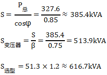 结论:综上计算结果,依据国家标准(GB/T17468)规范,宜就近选择630kVA容量变压器。
