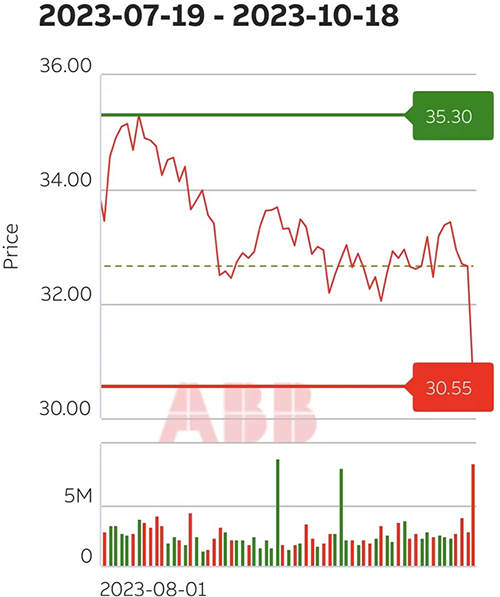 2023年第三季度ABB公司净利润从去年同期的3.6亿美元跃升至8.82亿美元,当时业绩受到南非传统Kusile发电站项目相关准备金的影响,而第三季度收入同比增长8%,达到79.7亿美元,营业税息折旧及摊销前利润增长13%,达到13.9亿美元,利润率为17.4%。