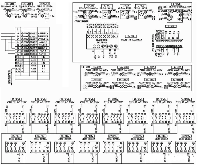 安装接线按照先左后右、从上到下、由里到外、先难后易的接线原则进行接线。先接无功功率表、电流表、电压表;然后接自动补偿仪、万能转换开关;完成以后进行捆扎线保持横平竖直转角为90°。端子排接线要留出一段线,每只端子上接线螺钉最多接两根导线。然后接线电流互感器、交流接触器、热继电器。