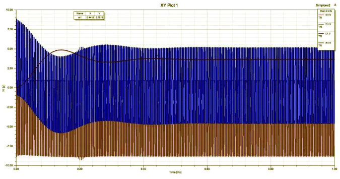 图17 加入磁珠等效电路后各元件上的电压波形