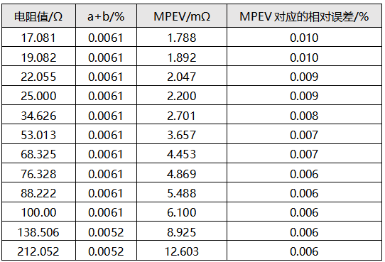 以上两种判定方法,第1种可能会造成判定标准过于严格,尤其是电测仪表量程与所需的校准点不合理时。例如,吉时利2002型数字多用表校准25.0000Ω时,电测仪表量程为200Ω,计算其最大允许误差为±1.225mΩ,相对误差为0.005%,而其a+b值为0.0021%,究其原因是数表量程偏大,造成(b×量程)值偏大,最终可能造成误判。第2种判定方法如果对电测设备指标概念把握不清(目前很多计量人员仅以a值作为等级指标),在电测仪表选型时就会出现错误,造成选配电测仪表不合理,数据超差。
