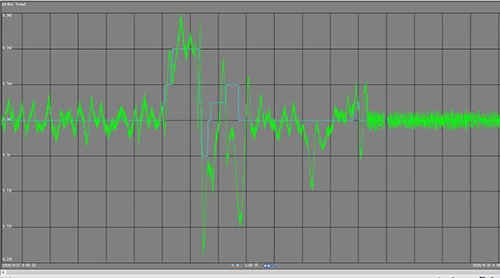 把压力自动控制的比例度增强了30倍,修改为1%。压力自动控制可以控制在设定值附近,但是有点同相位等幅振荡的趋势。将比例度调整为2%,调节阀振荡减弱,压力控制更稳定。